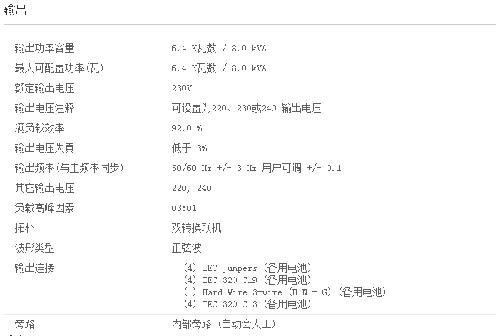 可擴展的運行時間需要時允許快速增加更多的運行時間自動內(nèi)部旁路在UPS電源出現(xiàn)過載或故障的情況下向所連接的負載提供公用電源。智能電池管理通過智能、準確的充電技術(shù)獲得電池性能、壽命和可靠性。熱插拔電池在更換電池的整個過程中,確保干凈、不間斷電源以保護設備經(jīng)UPS關(guān)機后自動重啟負載一旦市電恢復,則自動重新啟動所連接的設備。溫度補償電池充電根據(jù)實際的電池溫度調(diào)整充電電壓延長電池壽命